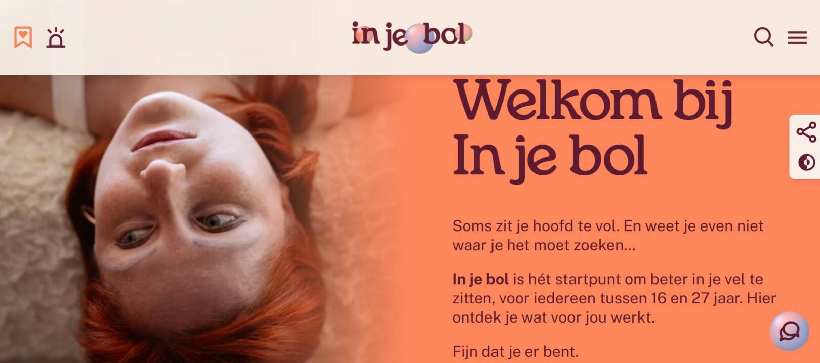 In je bol is een online platform speciaal voor jongeren (16–27 jaar) die vragen of zorgen hebben over hun mentale gezondheid. Op injebol.nl vind je betrouwbare informatie, praktische tips & tools, ervaringsverhalen van andere jongeren én laagdrempelige hulp-opties zoals gratis en anoniem chatten of bellen met een getrainde vrijwilliger. Het is een veilige plek om te ontdekken wat jou kan helpen, ervaringen te delen en te kijken welke steun er verder online of bij jou in de buurt beschikbaar is.
