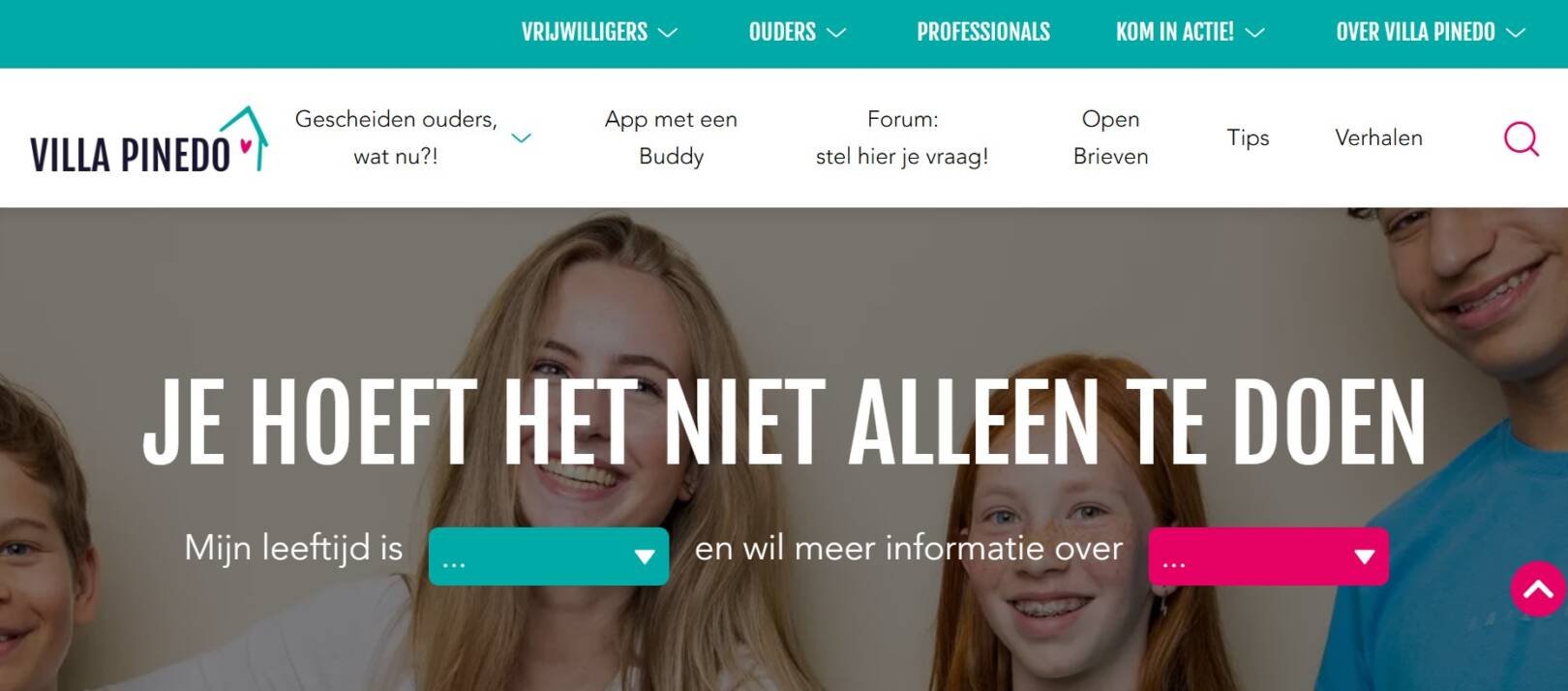 Deze tip is speciaal voor als je ouders gescheiden zijn. Villa Pinedo is een stichting voor en door kinderen en jongeren (ongeveer 10–23 jaar) van wie de ouders gescheiden zijn. Op de website kan je terecht om hun ervaringen te delen en vragen te stellen. Ook kan je steun krijgen van andere jongeren die zelf ook een scheiding hebben meegemaakt. Je kunt bijvoorbeeld meedoen aan het forum of via een Buddy-app gekoppeld worden aan een buddy.